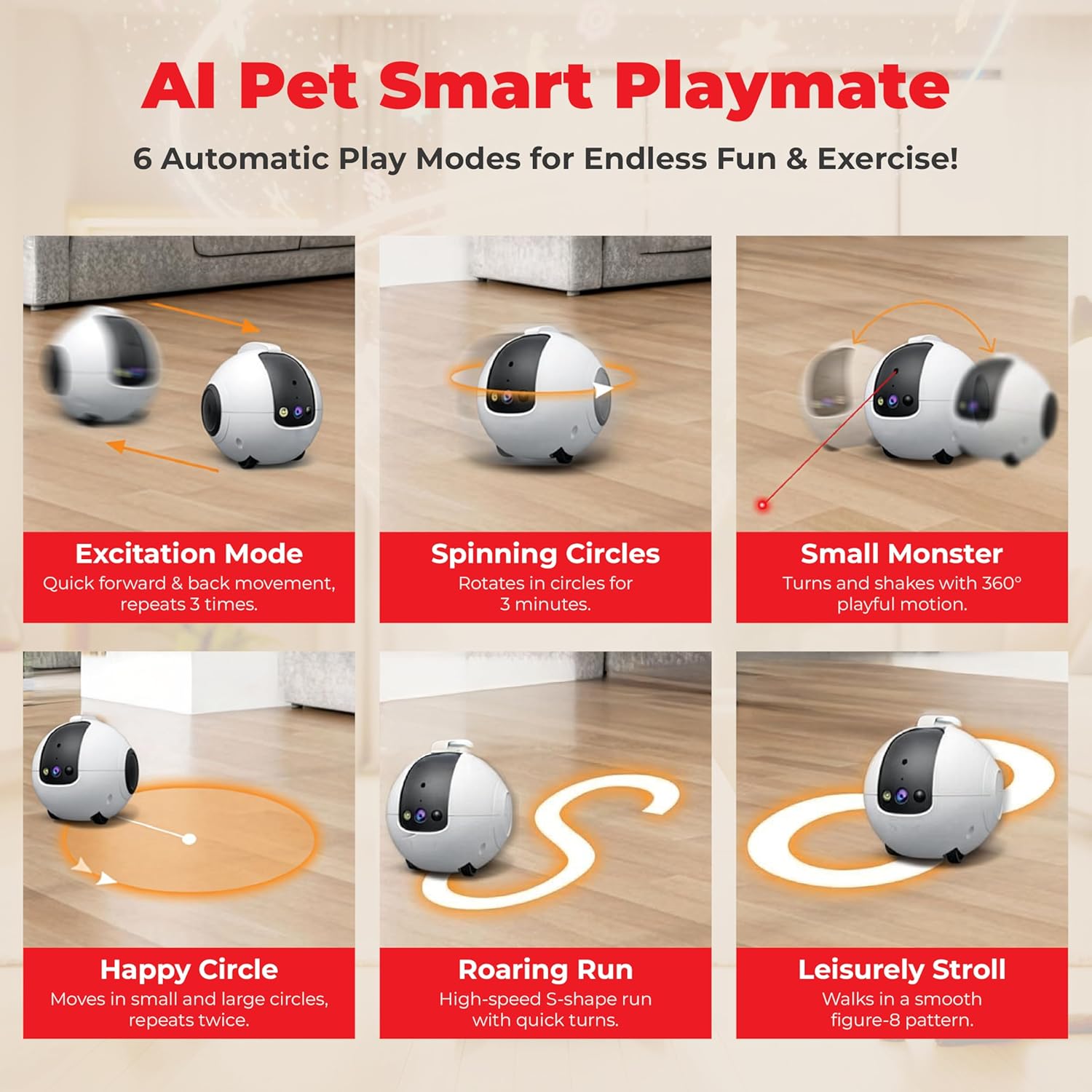 | Other Special Features of the Product | 360° Mobility + Smart Detection, AI Pet Interaction System, Massive 10,000mAh Battery, Tumbler Anti-Fall Design, Ultra HD 1440P Full-Color Night Vision |