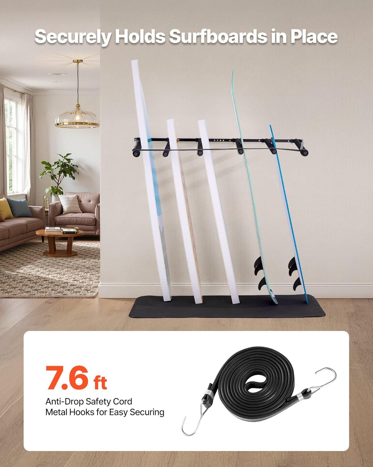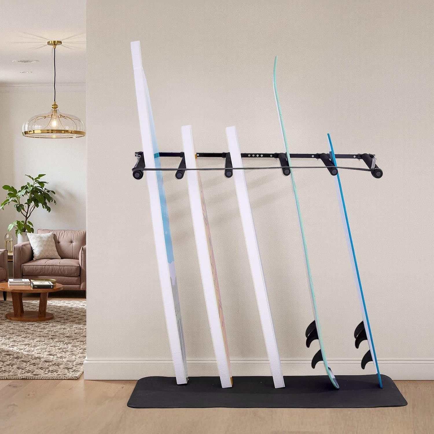 Surfboard Wall Mount, 5 Tiers Vertical Surfboard Rack for Storage and Display, Adjustable Metal Board Stand Organizer with Sponge Pad, Surf Board Holder for Snowboards, Kiteboards, Shortboard