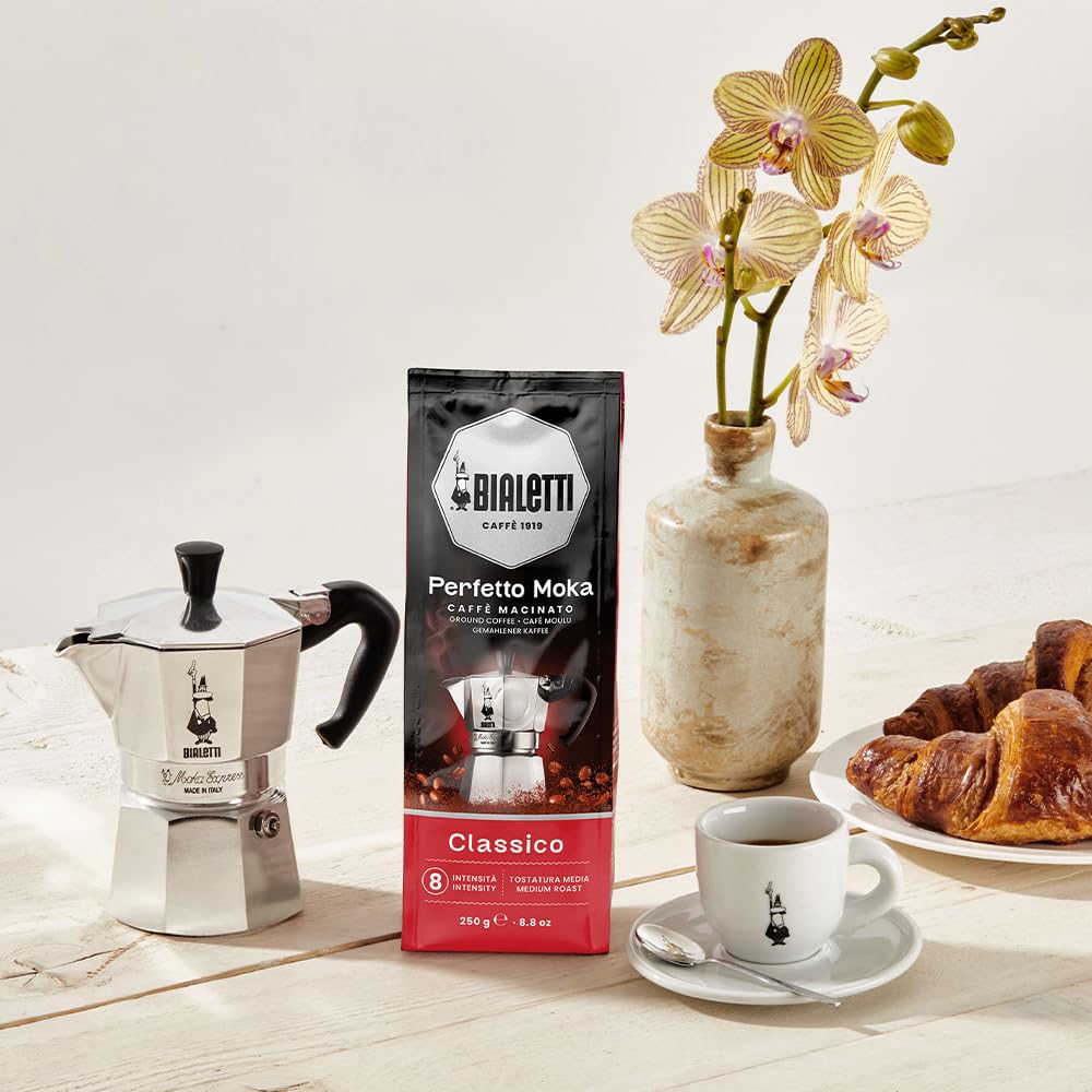 For over 80 years in the homes of Italians, Bialetti has studied the perfect coffee. Perfect in roasting: traditional and artisanal, the Bialetti roasting method has a long and controlled duration that allows to highlight the entire aromatic spectrum of coffee origins; Perfect in grinding: the specific size of the coffee powder guarantees a full-bodied cup result, giving creaminess and aromatic intensity; Perfect in taste: choice of the best berries, perfect mixing and roasting of each batch, to ensure a combination bio of flavor bio and perfumes perfect to be prepared in Mocha.