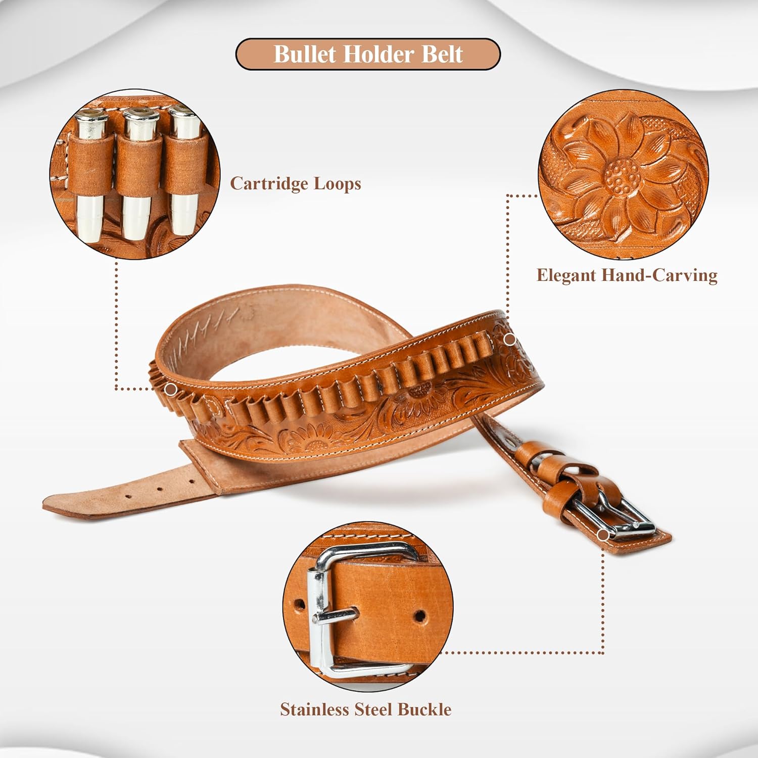 Bring timeless western style and rugged reliability to your gear with the TREE OF LEATHER Full Grain Buff Leather Cartridge Belt. Handcrafted with care, this bandolier-style ammo belt is built from premium full grain buff leather, ensuring durability, flexibility, and long-lasting performance. Designed to hold ..22 Colt caliber cartridges, each loop is carefully stitched to keep rounds secure yet accessible. Whether you’re at the shooting range, out hunting, or participating in cowboy action events, this belt delivers function with style. The western-inspired design is available in four rich leather finishes – Black, Brown, Tan, and Two-Tone – with sizes ranging from 32 to 50 inches. Its polished details and sturdy hardware make it a versatile accessory for enthusiasts, collectors, or anyone seeking authentic craftsmanship. Add a touch of tradition to your outfit with a cartridge belt built to last – a perfect blend of function, comfort, and style.