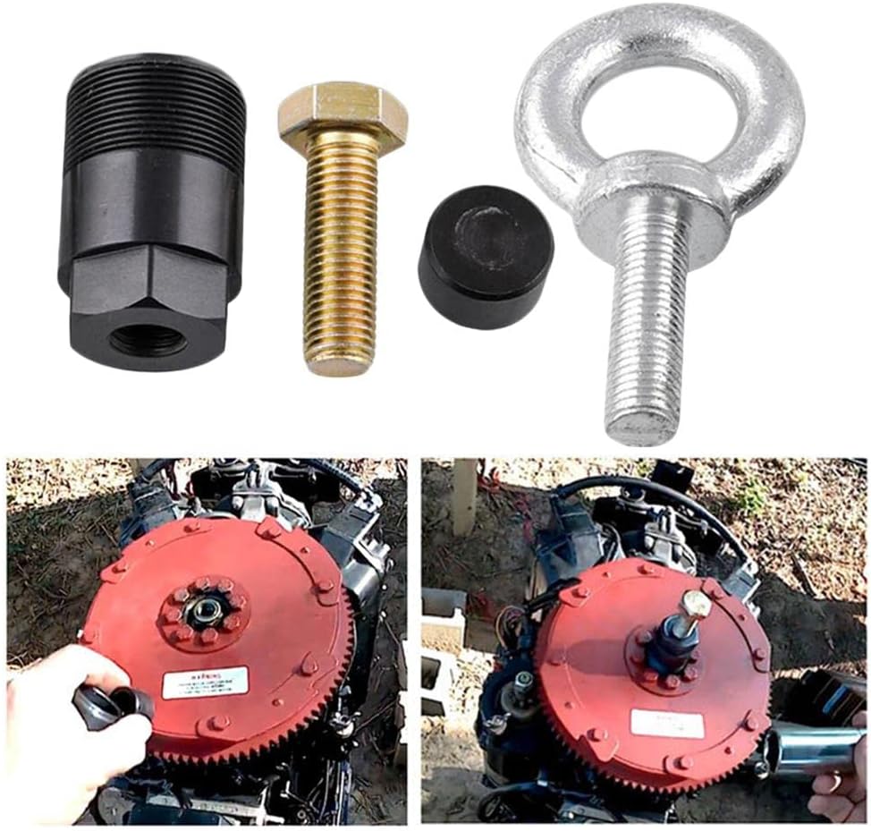 Description: - Replaces Flywheel Puller part number: 91-849154T1; Replaces Lifting part number: 91-90455-1. - Fits for most 50HP+ , Mariner, Force and outboard motors with 1 1/2"-16 TPI threads units, please check thread diameter to verity. - Made it easier to remove the flywheel and lift the motor. - The puller comes with a black oxide finish preventing corrosion to assure long service time. - 100% Brand New and High Quality. Size: approx. 18x10x5cm/ 7x3.93x1.96inch.Specification: - 1 1/2" - 16 TPI Tool Threads; - 5/8" - 18 TPI and Lift Threads - How to use: - Insert the crankshaft protector into the bod; - Screw the puller into the flywheel; - Tighten the puller to easily slide the flywheel off.Package Includes:1 Piece Flywheel Puller Removal Tool Kit