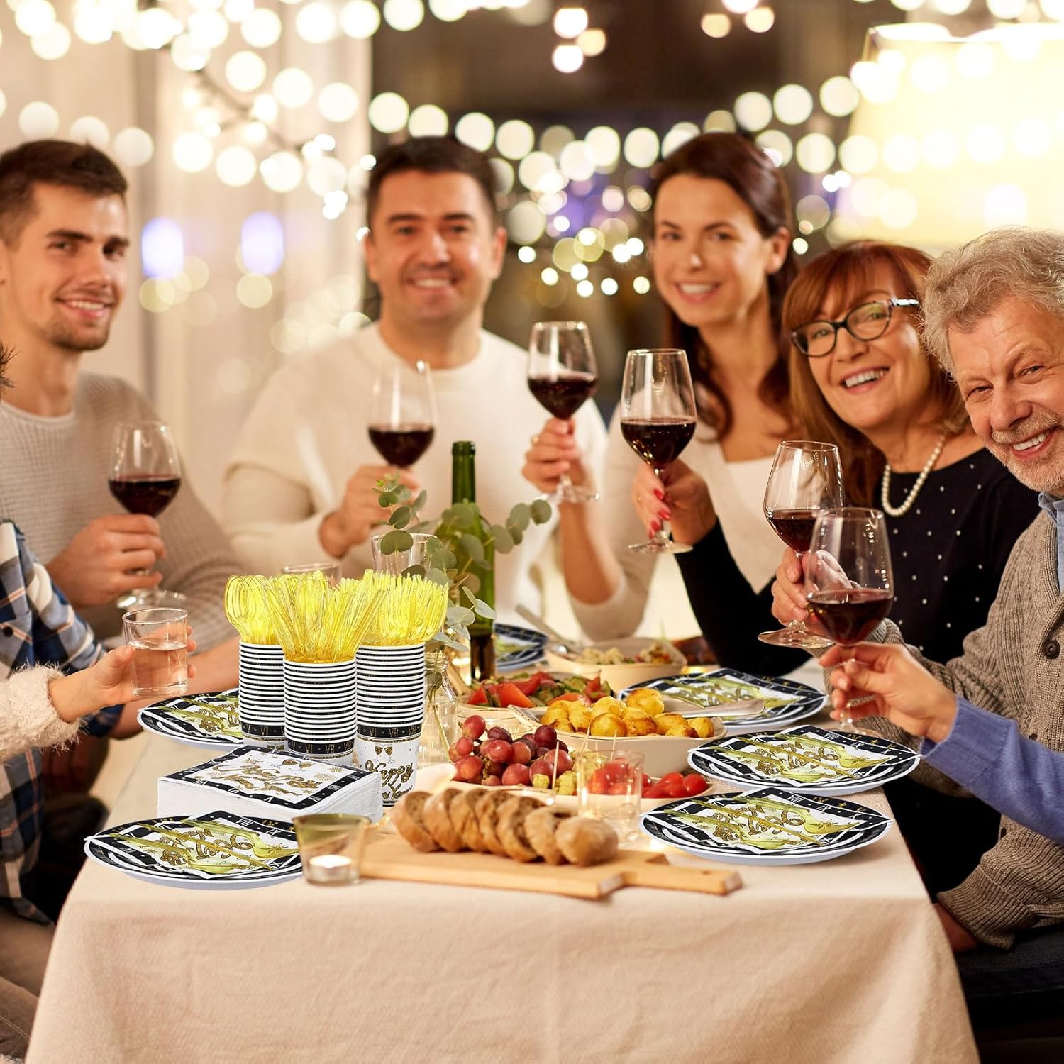 | Included Components | 50 x Happy new year paper plates, 50 x Paper cups, 100 x happy new year paper napkins, 50 x Small happy new year paper plates, 50 x White knives forks spoons |