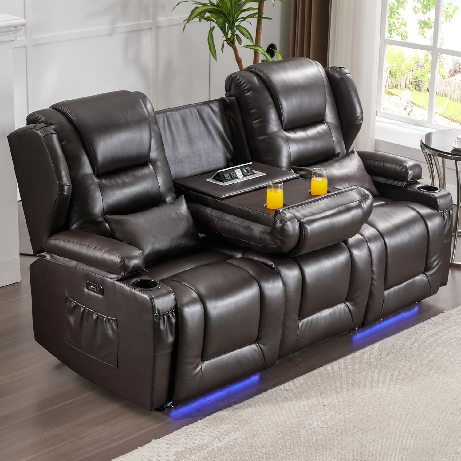 | Theme | Power Reclining Loveseat Sofa Set with Console, Cup Holders, LED Lighting, and Storage for RV, Home Theater, and Living Room |