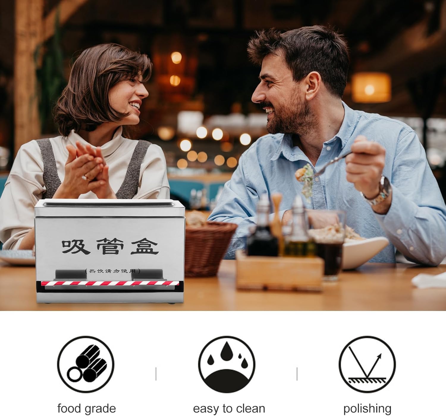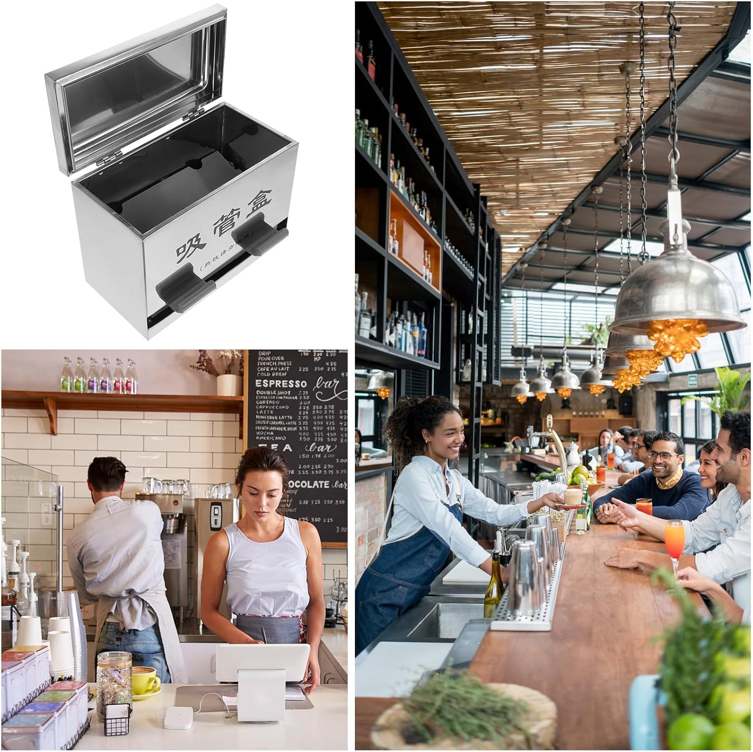 Package List 1 x straw box Characteristics -Color:Silver -Material:Stainless steel, PP -Product Info:Straw storage box -Note :① suitable for the length of 20 cm and diameter of about 2 than the straw; ② Use with unpacked bulk straws. Not suitable for individually wrapped straws counter straw holder. -Size:22.50X17.60X11.50cm/8.84X6.92X4.52in -Stainless steel, smooth surface, , easy to clean, reusable straw dispenser; Non-slip bottom drinking straw holder. -Self-serve pressure . Perfect for family, restaurant, coffee shop, business, office storage of plain packaging straws drinking straw dispenser. -There are 2 buttons in the box to control the size of the socket aperture. If you press the button directly, it's usually through one straw at a time. -Made of premium stainless steel materials, there is room for up to 200 straws.Goods Informationcontainer for straws Smooth surface and nice polished, neat and generous, so don't need to worry about harming your hand.straw holder straw organizer This convenient straw dispenser box is perfect for the snack bar, coffee shop and fast food restaurant.Straw Container Fine workmanship the practicality and durability.metal straw container holder This straw box is made of good material which is and strong.counter straw holder Simple pressing-type structure, practical to use