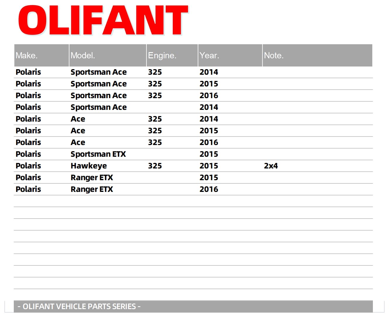 | Manufacturer | OLIFANT |