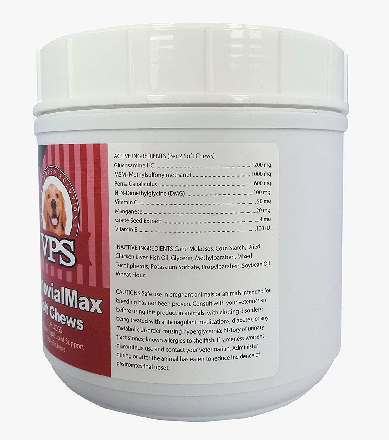 VPS Hip & Joint SynovialMax Soft Chews for Dogs is a comprehensive nutritional supplement to support a dog's healthy hip and joint function.